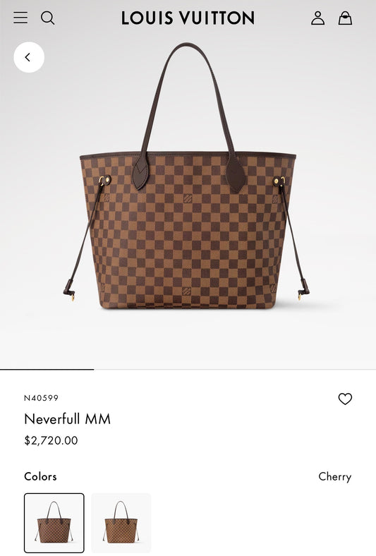 Louis Vuitton damier ebene cherry interior neverfull mm with no rips on the trim in gorgeous condition retail $2720