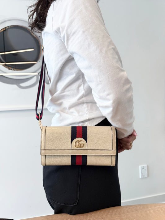 Gucci supreme Ophidia floral flap wallet with box and added removeable strap ! Retail $1100 fits phones etc