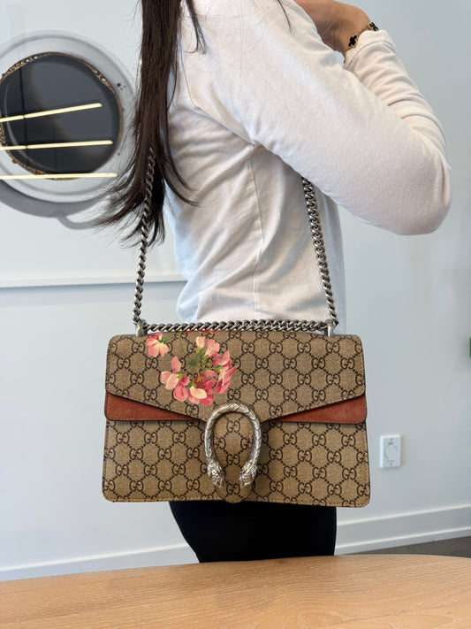Authentic GUCCI GG SUPREME BLOOMS CANVAS/BURGUNDY SUEDE DIONYSUS MEDIUM SHOULDER BAG RETAIL $4300!