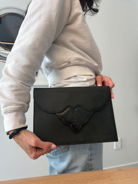 Authentic Yves Saint Laurent Magnetic closure crossbody clutch with added removeable strap fits phones keys makeup etc