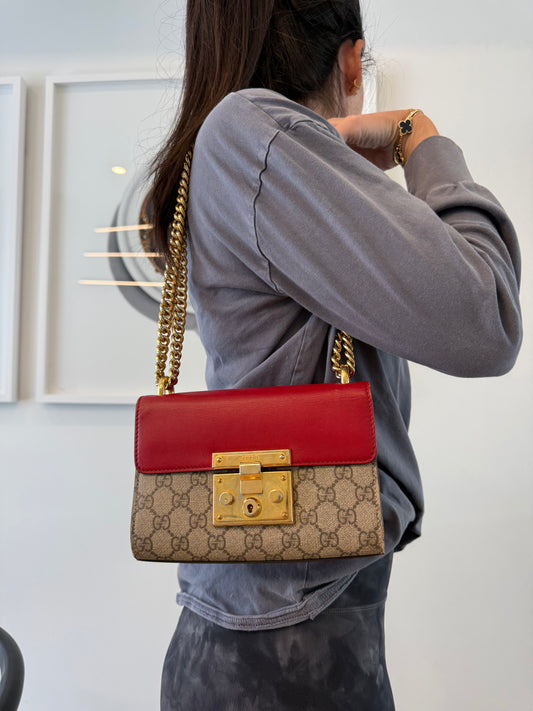 Gucci supreme padlock 2 way chain crossbody shoulder bag in dustbag $3000 retail
