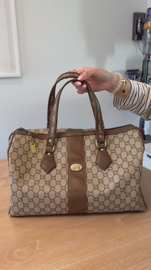 Rare Gucci Supreme plus heavy heavy duty top handle speedy carryon with gorgeous fabric interior and authenticity card!!! Rare vintage gold.