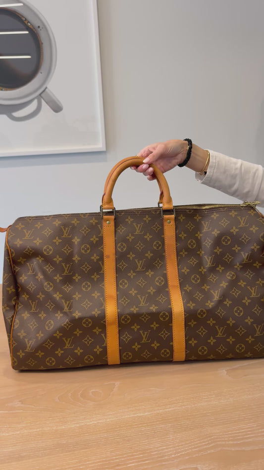 Authentic Louis Vuitton Monogram Keepall 60 Bandolier with adjustable original heavy duty strap! Retail is $4000! All trades accepted gorgeous preloved condition