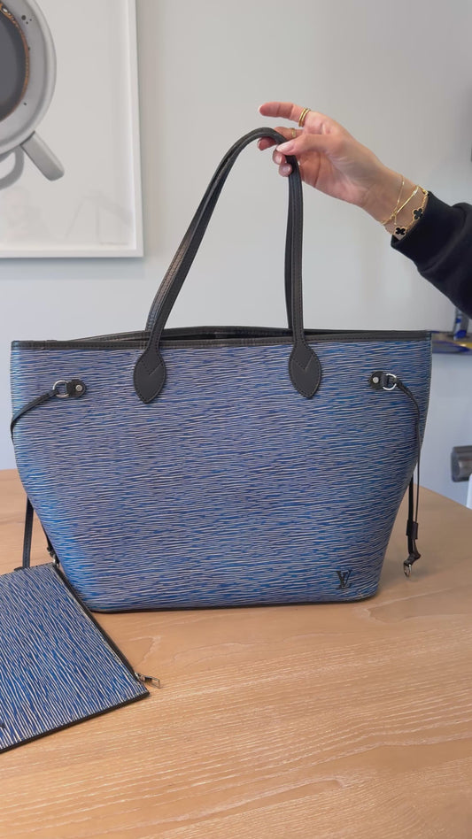 Louis Vuitton neverfull MM limited edition denim blue /black with matching pochette in absolutely gorgeous condition