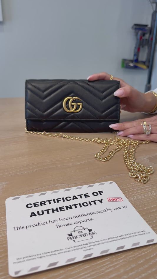 Retail $1150! Like new Gucci Marmont flap xl wallet with added strap in chevron ! Strap is removeable ! Fits phones cards cash coins etc
