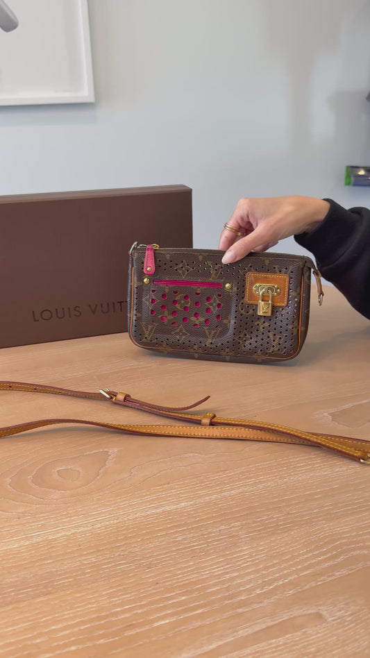Louis Vuitton Monogram Perforated Pochette Accessoires (Fuchsia) With original adjustable lv strap! 2006 collection designed by Marc Jacob’s!