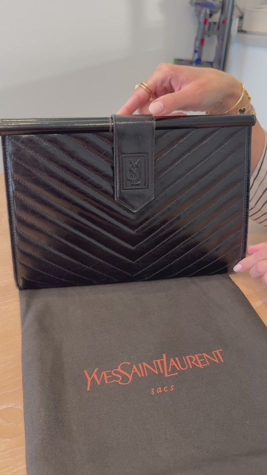 Authentic Yves Saint Laurent Chevron Magnetic Closure Clutch in pristine condition inside and out with dustbag fits all phone cards cash coins wallets makeup etc