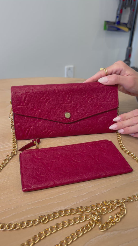 Authentic Louis Vuitton Sarah empriente wallet with coin pouch added removeable strap! Fits all phones cards cash coins etc