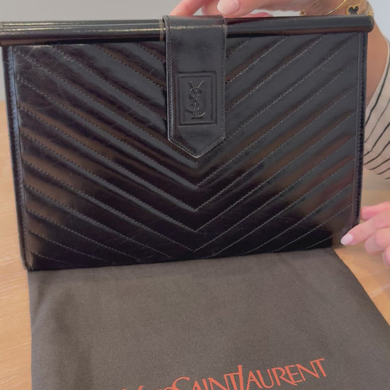 Authentic Yves Saint Laurent Chevron Magnetic Closure Clutch in pristine condition inside and out with dustbag fits all phone cards cash coins wallets makeup etc