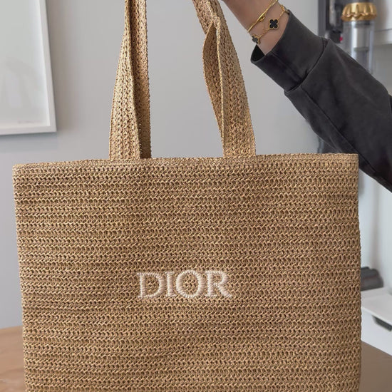 Buy 1 get 1 free ! Brand new Dior beach raffia tote daily tote ! Laptops clothes etc plus 1 brand new black shoppers Dior tote