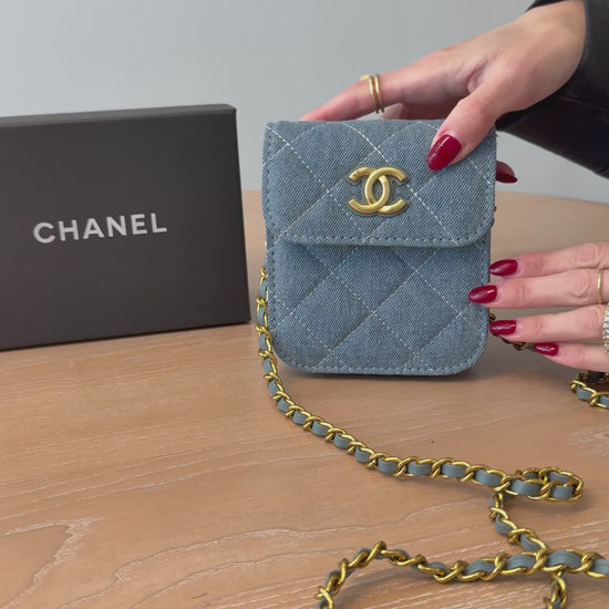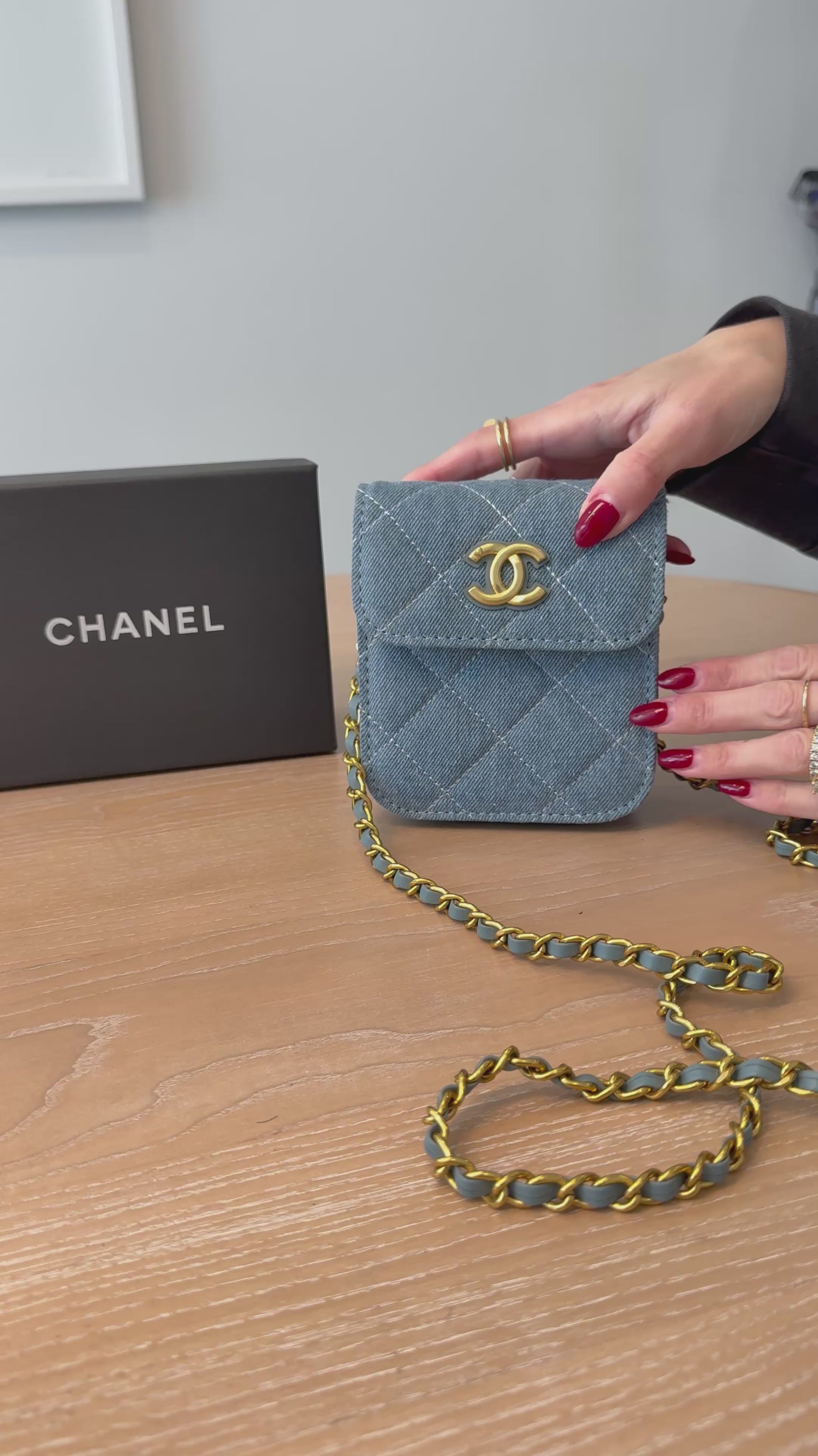 Brand new in box Chanel Denim crossbody !! With compliments of Chanel! Fits alll cardholders keys makeup etc