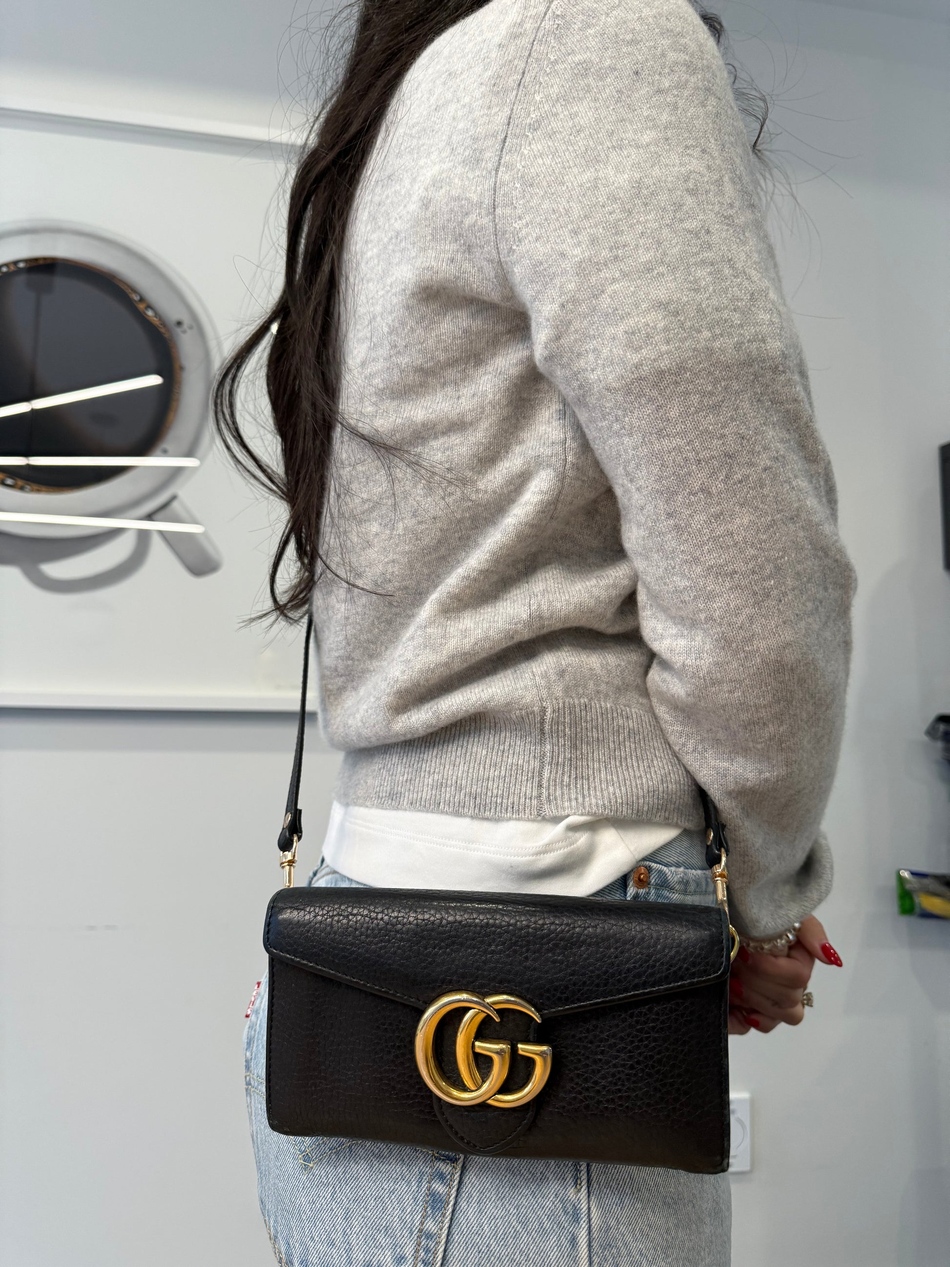 Gucci envelope double GG wallet with added strap fits phones cards cash coins etc retail $1100 with original dustbag
