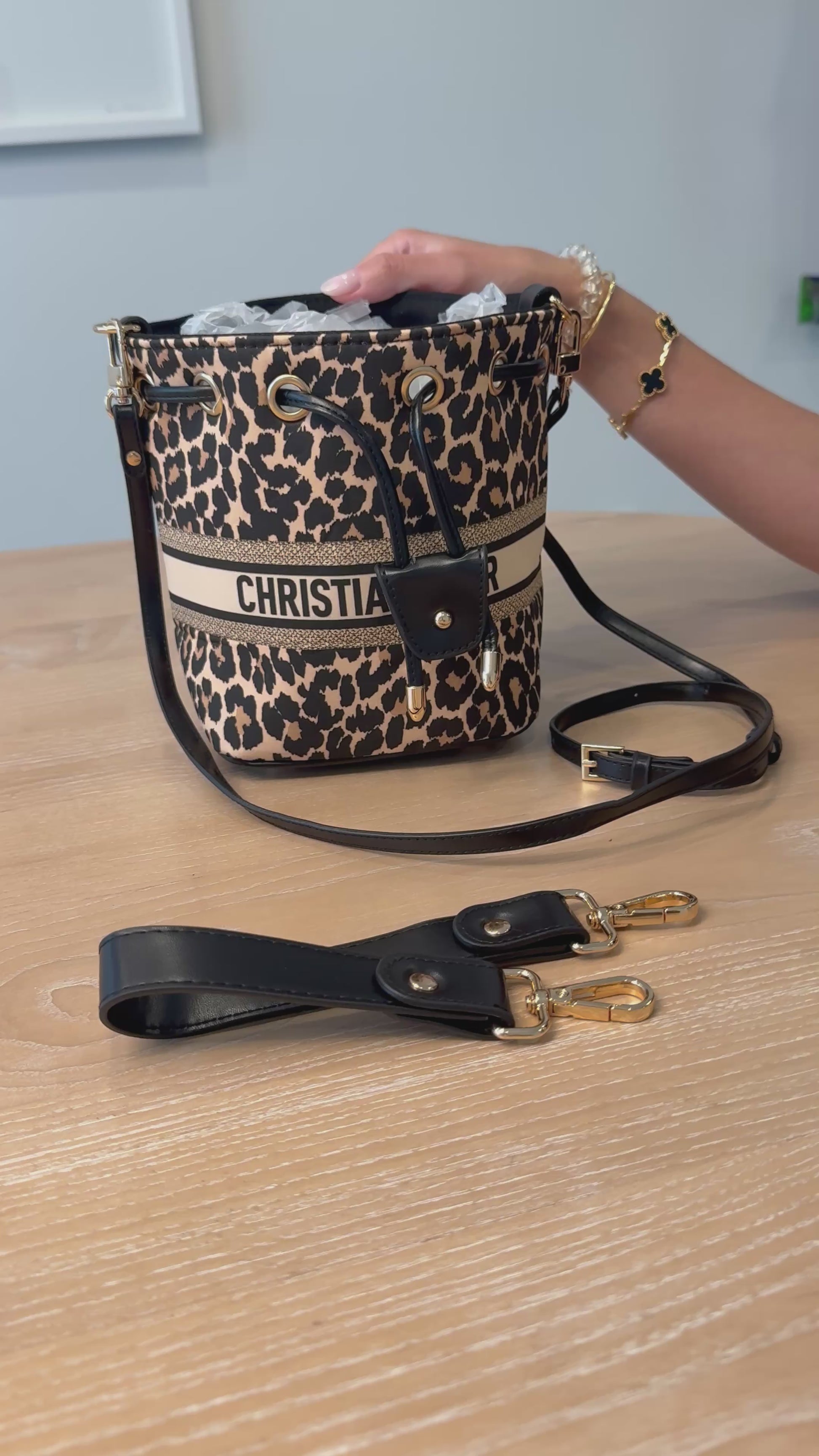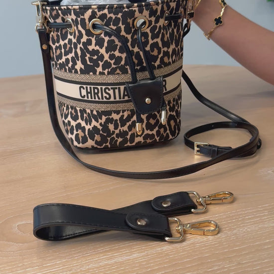Like new Christian Dior leopard Beatuty bucket shoulder crossbody bag in 9.5/10 condition fits phones wallets keys makeup etc such a rare drawstring