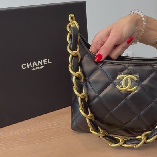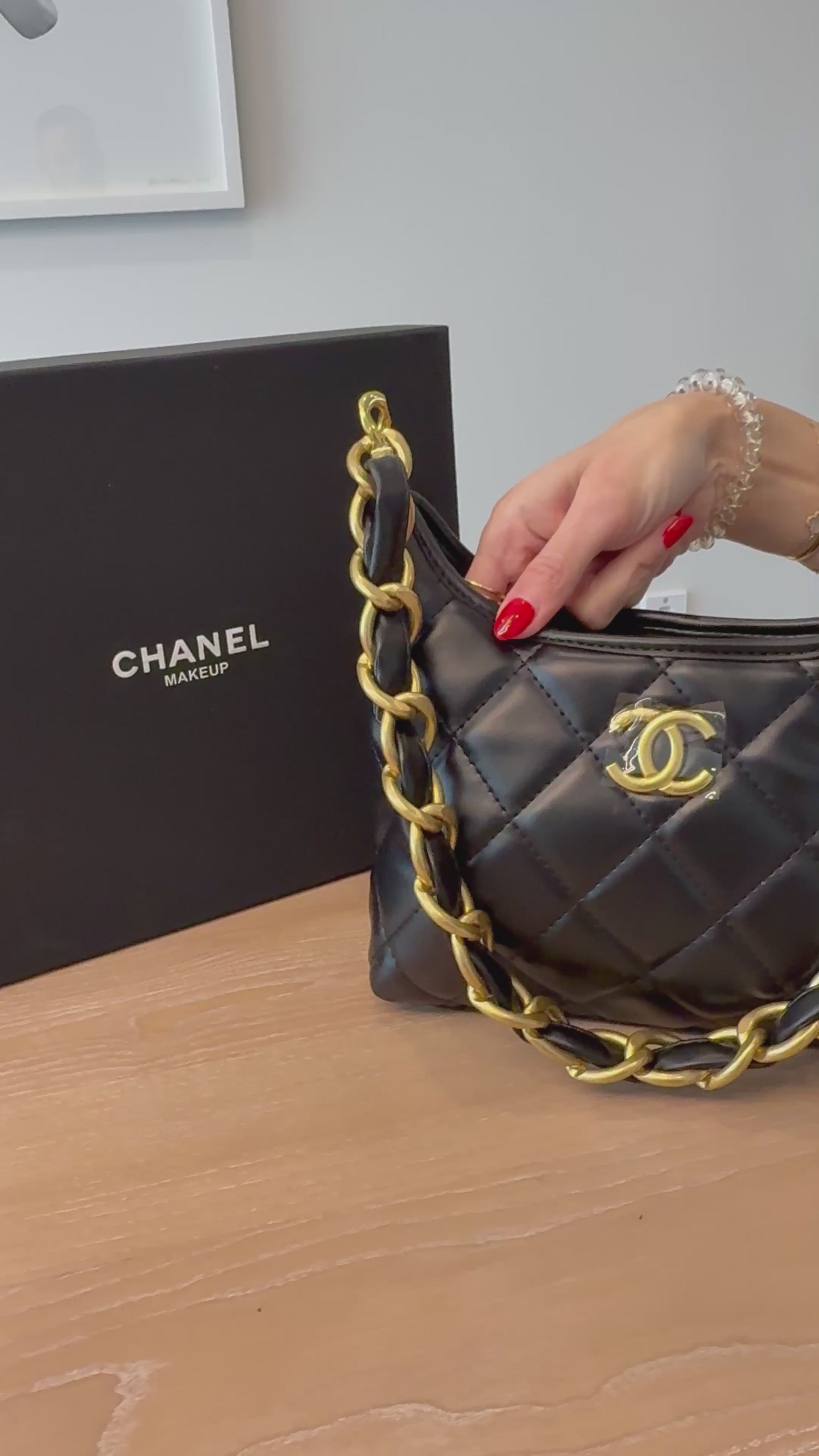 Like new in box ! Chanel makeup VIP thick shoulder strap hobo zipper top bag! Don’t spend 12k in stores! This makeup bag does the job!