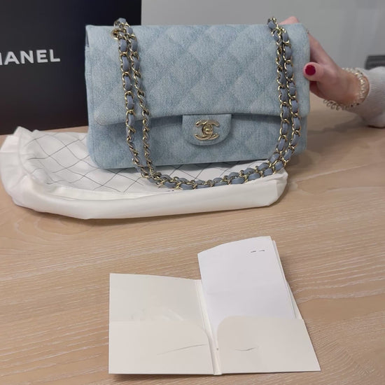 Limited Edition Chanel denim classic double flap medium crossbody shoulder bag!