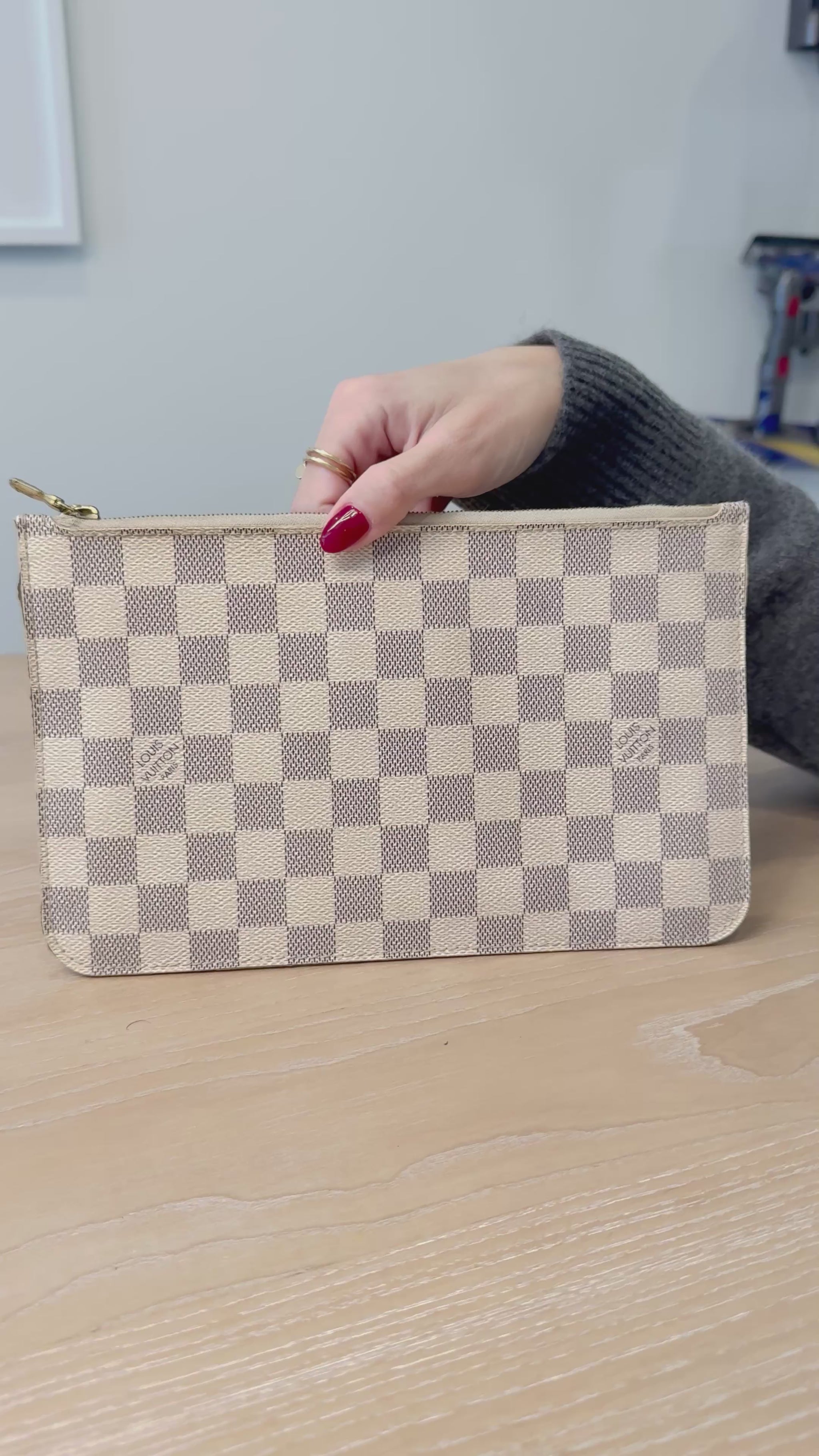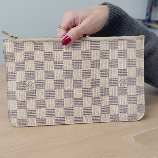 Louis Vuitton damier azur pochette accessories GM with original leather lv wristlet fits phones keys makeup etc