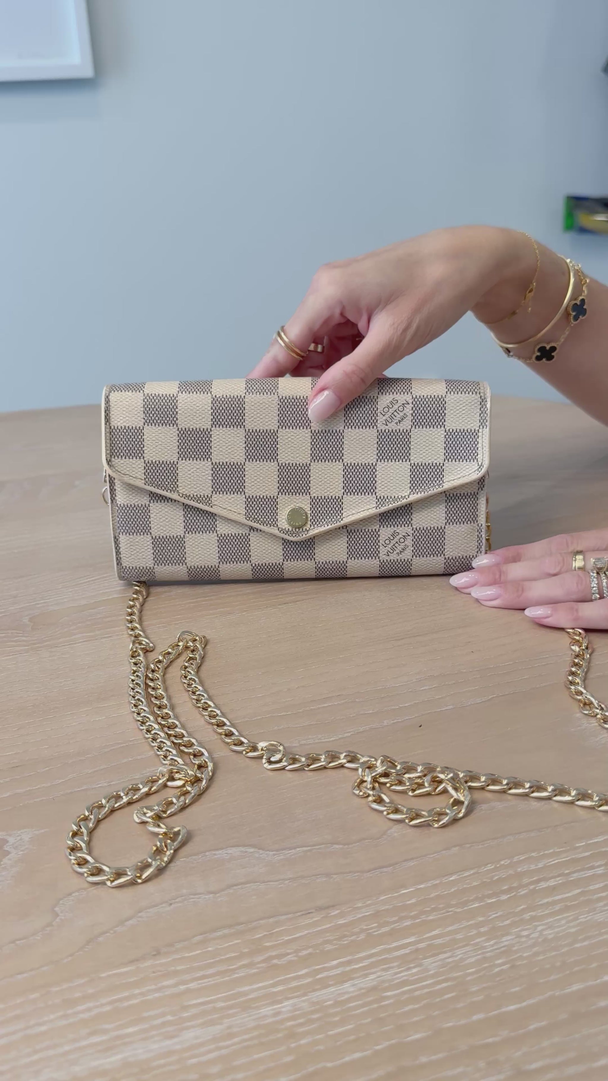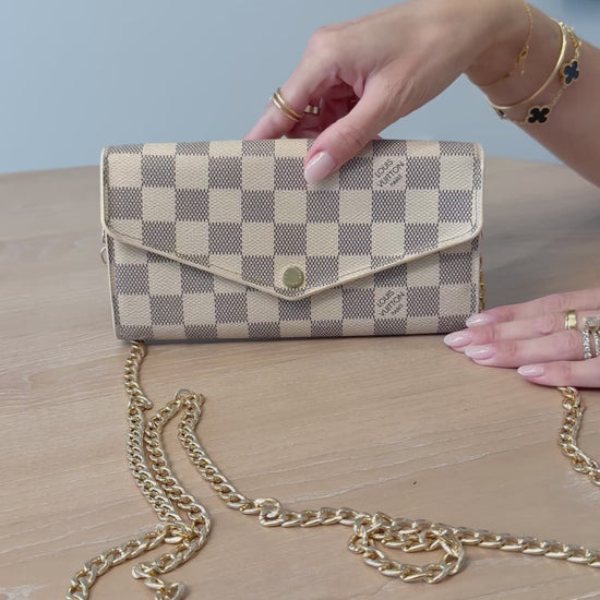 Louis Vuitton damier azur Sarah envelope wallet with added strap and dustbag in absolute pristine condition! $799 plus tax retail