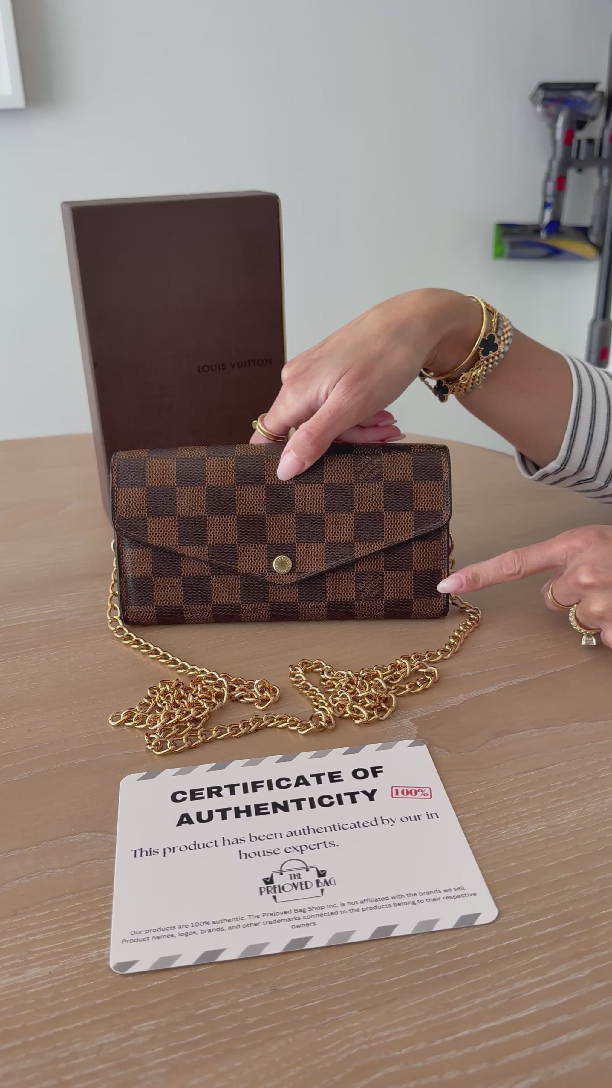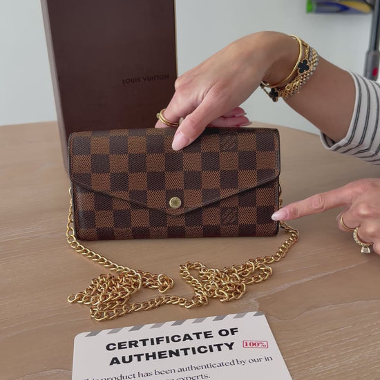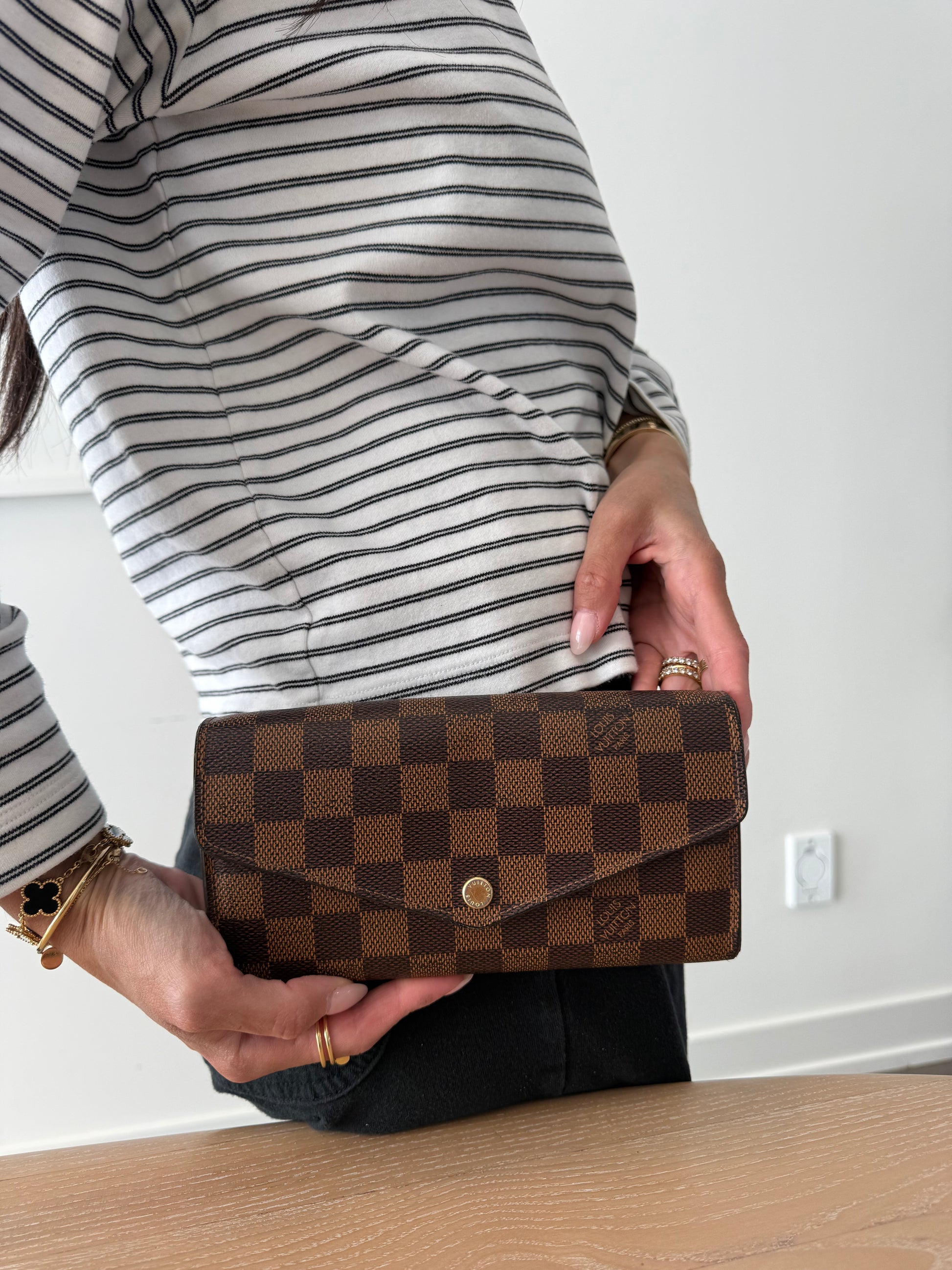 Louis Vuitton damier ebene Sarah monogram wallet in box with added removeable strap ! $910 plus tax retail
