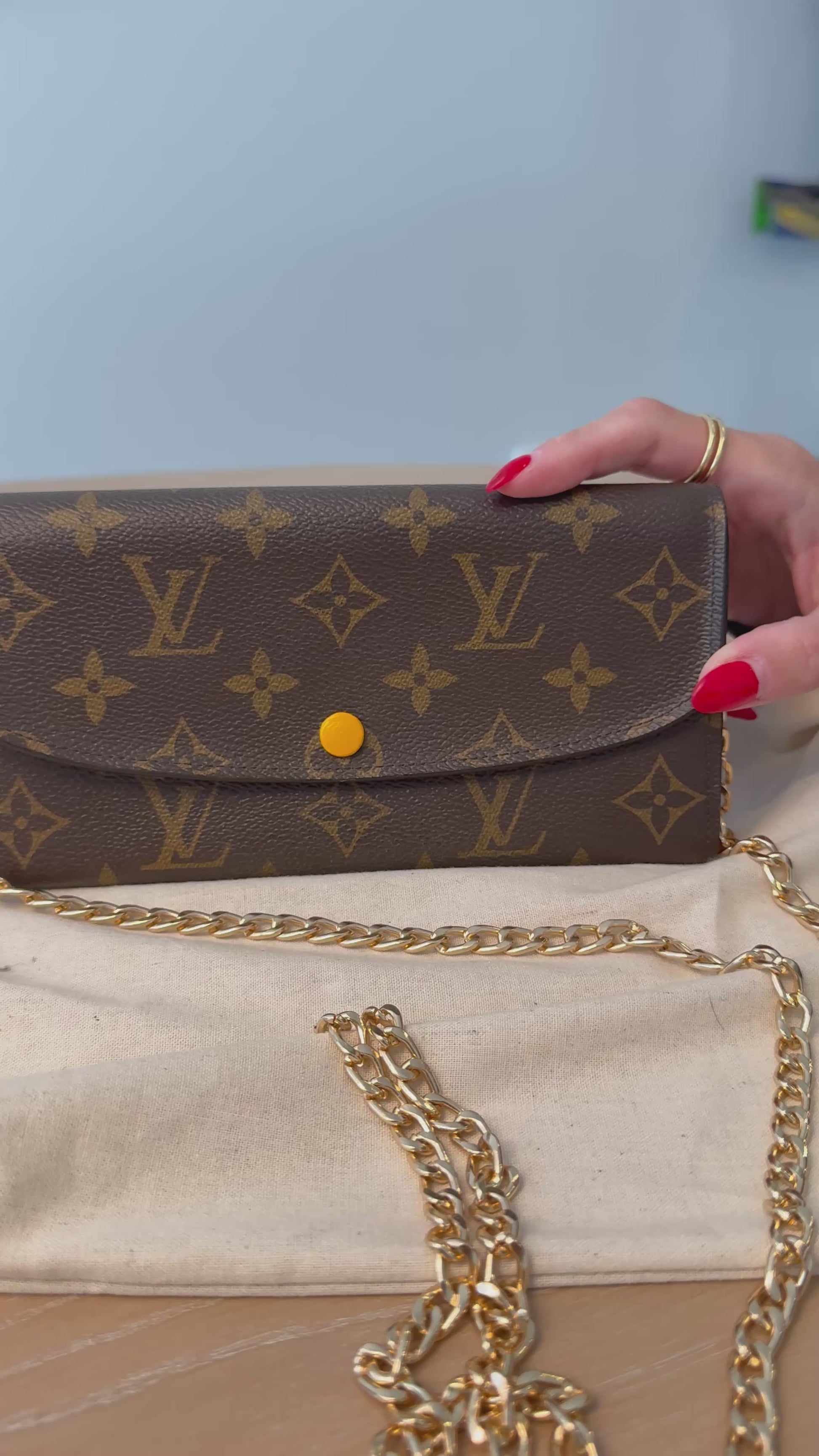 Louis Vuitton monogram Emily sunset long wallet with added strap and a dustbag! Fits phones cards cash coins etc