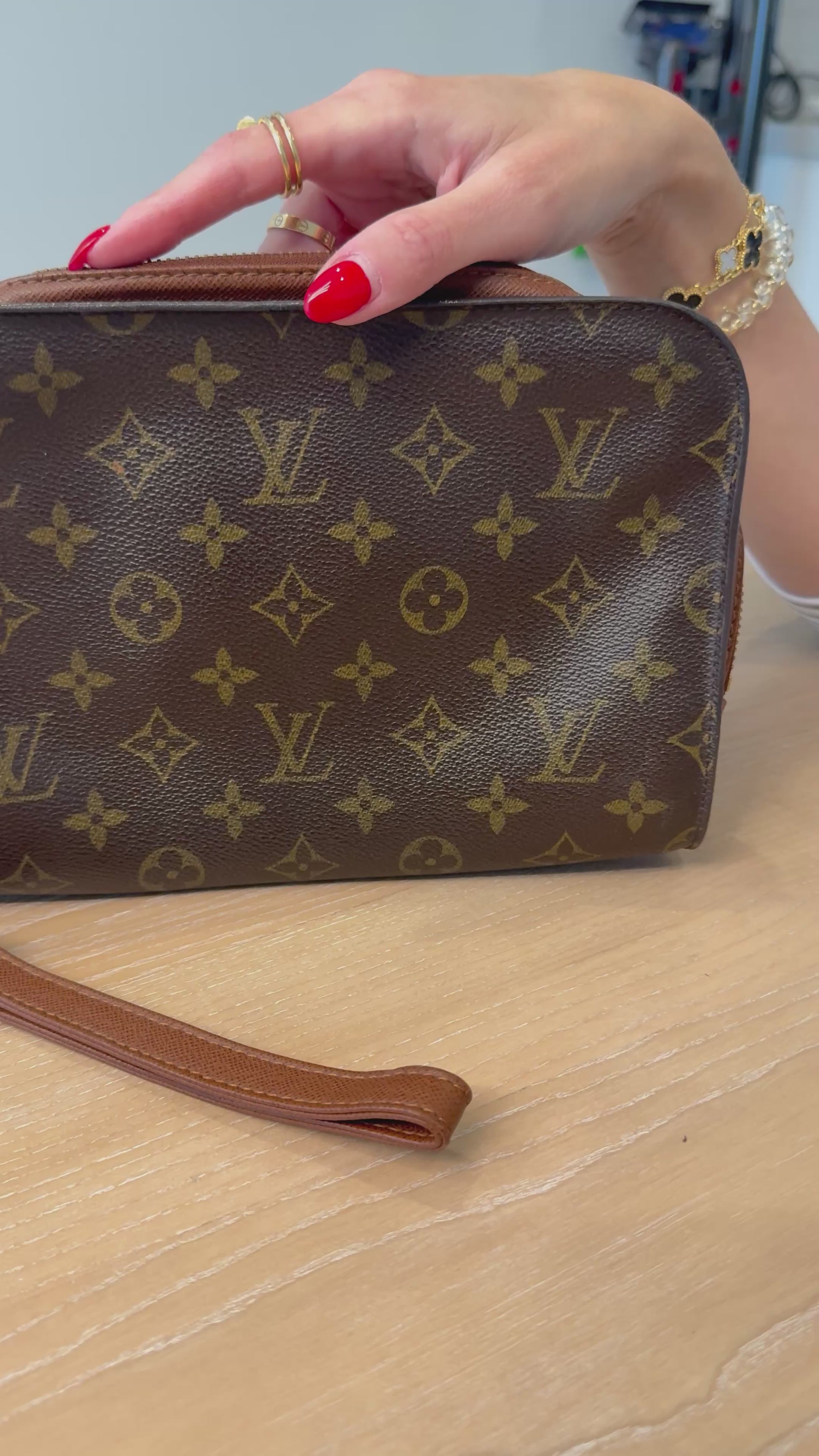 Louis Vuitton monogram orsay wristlet with original lv strap! Fits phones keys makeup etc