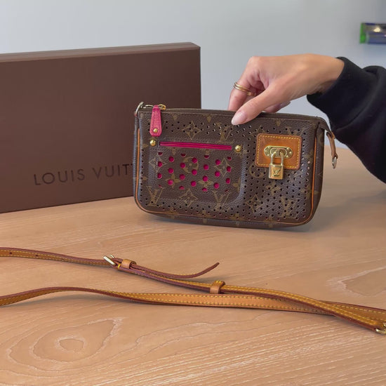 Louis Vuitton Monogram Perforated Pochette Accessoires (Fuchsia) With original adjustable lv strap! 2006 collection designed by Marc Jacob’s!