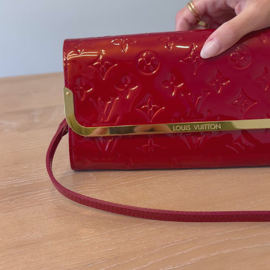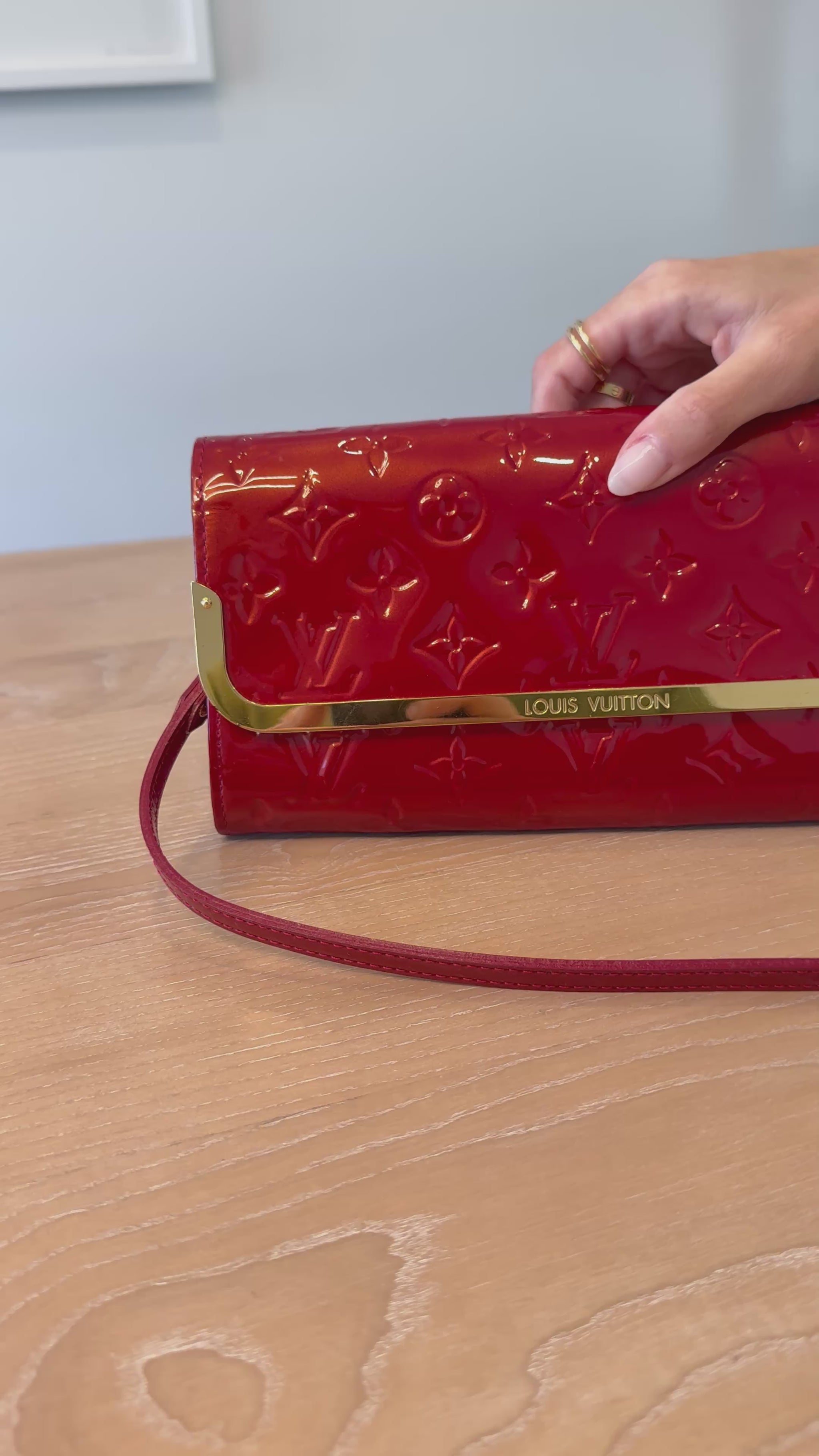 Louis Vuitton red/gold vernis rosemore with original shoulder pochette strap! Cards cash coins phones keys lipstick etc fit !