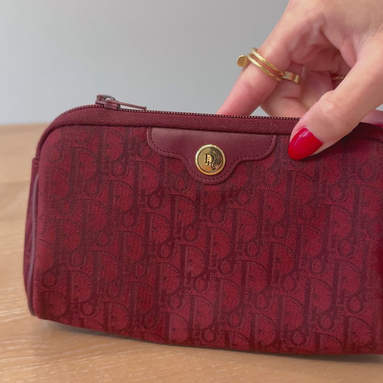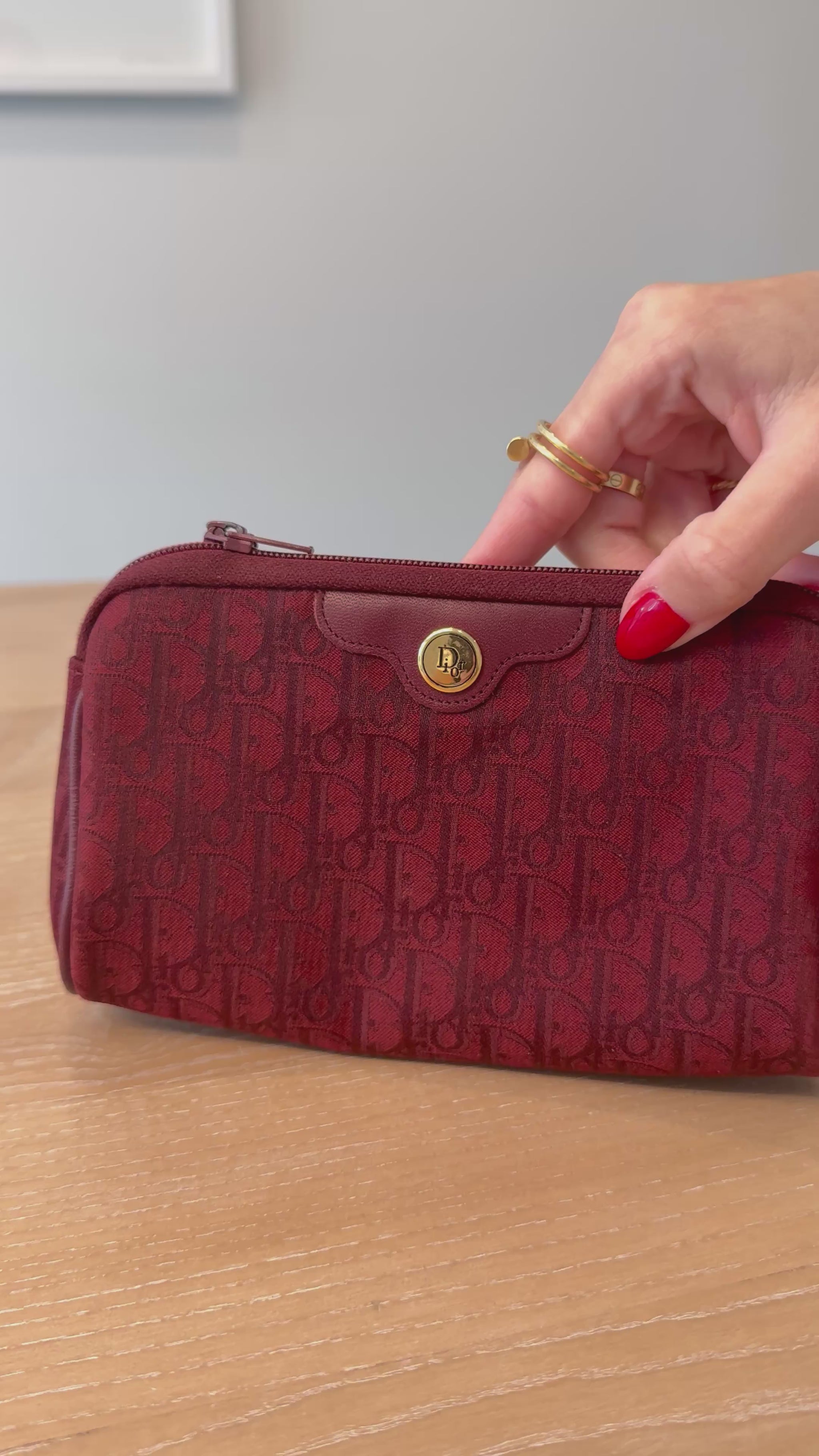 Rare Dior red on red stunning zipper top clutch with phones keys makeup etc