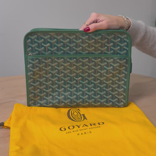 Rare Goyard money green Jouvence GM zipper top new toiletry clutch in dustbag