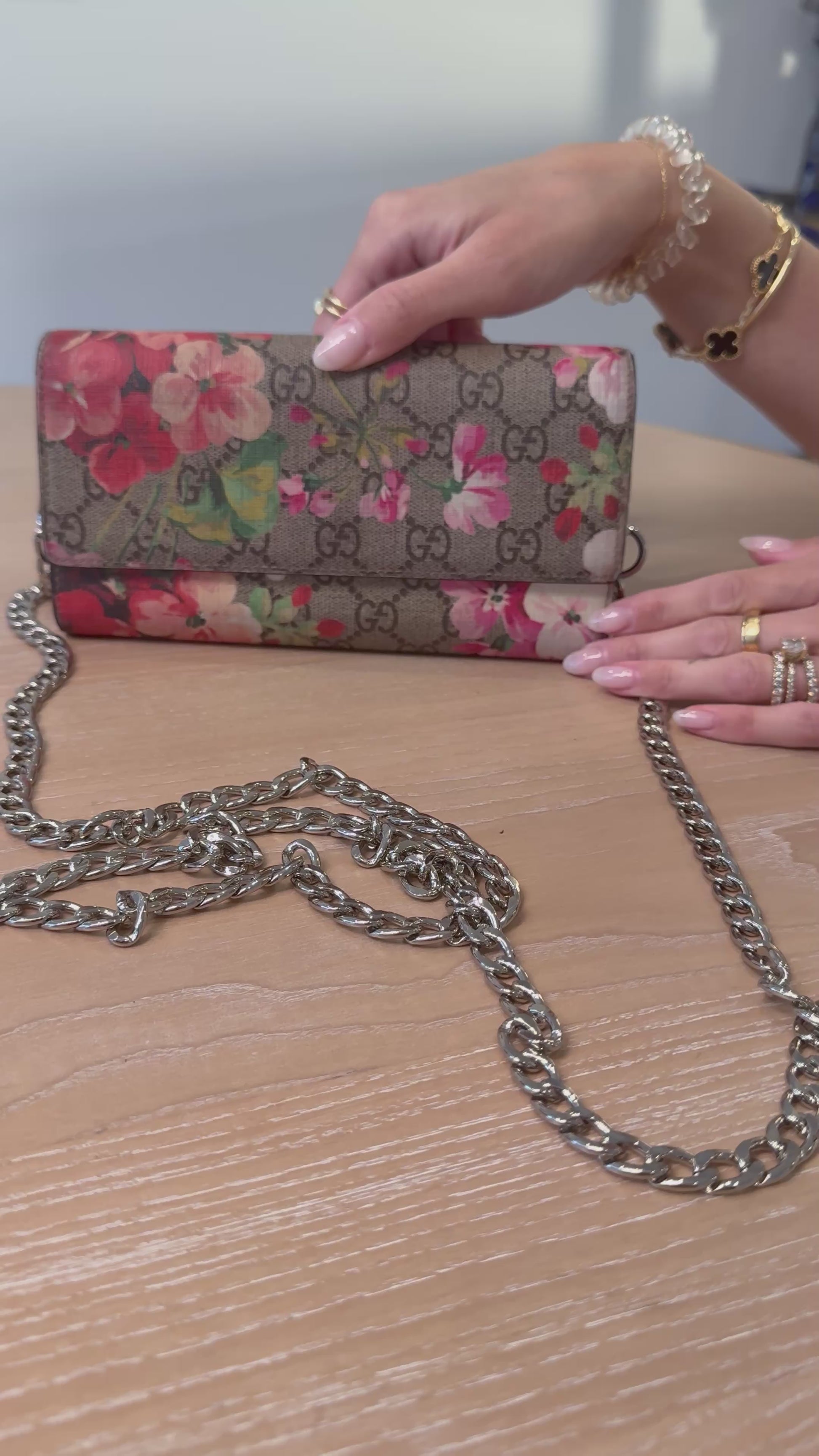 Rare Gucci blooms flap xl wallet with added strap ! Fits phones cards cash coins etc