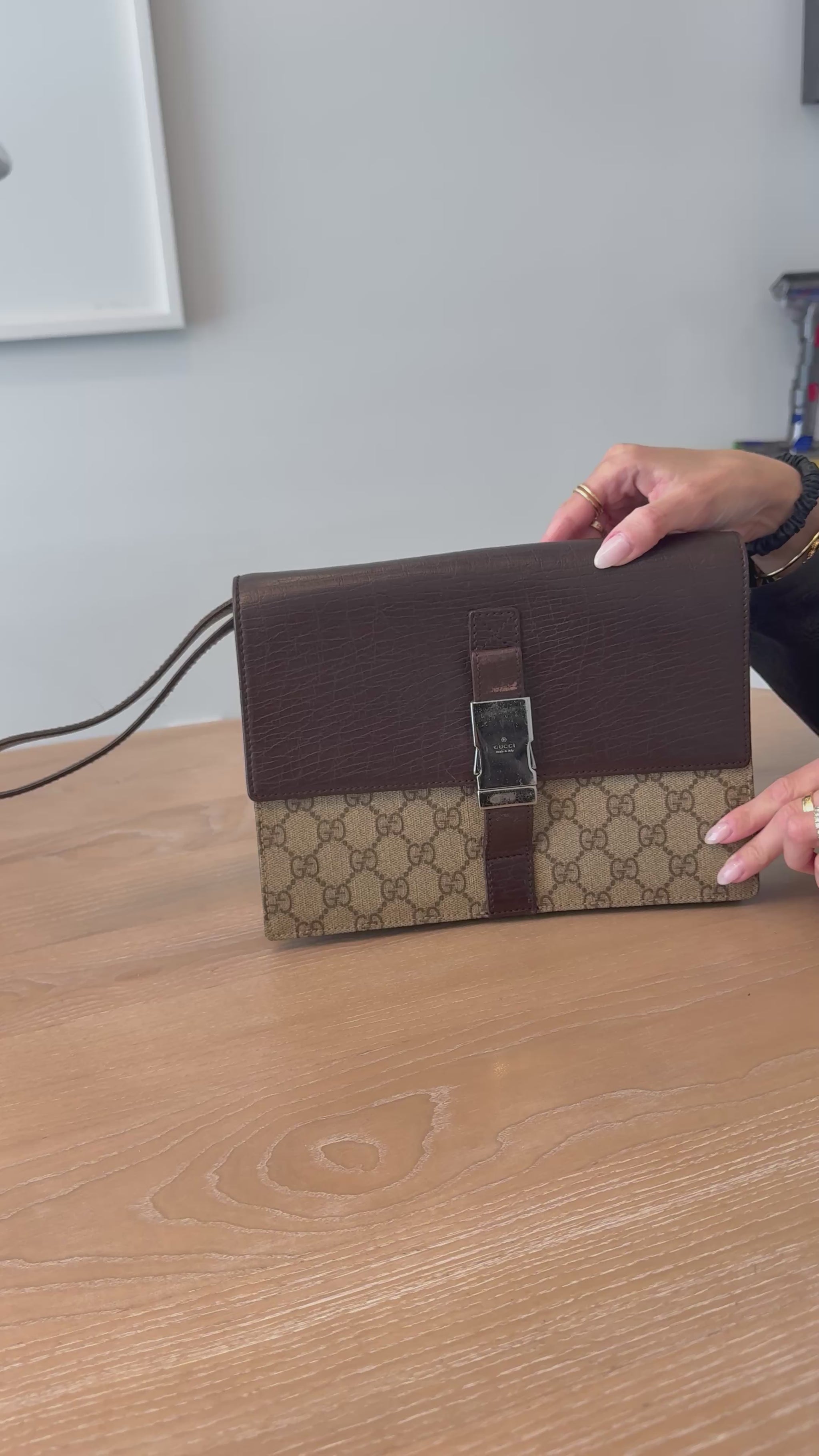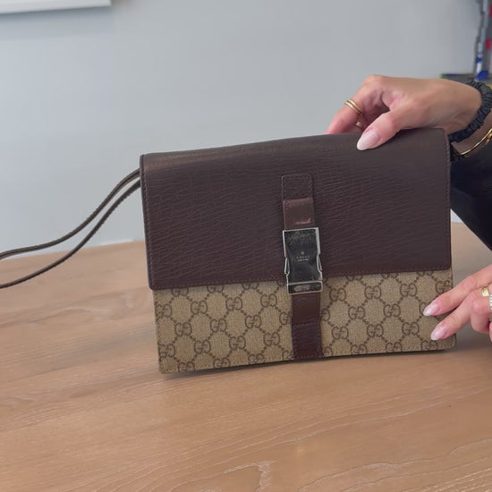 Rare Gucci supreme flap xl buckle closure retractable wristlet with added strap this crossbody is stunning!!! Fits phones wallets keys makeup etc