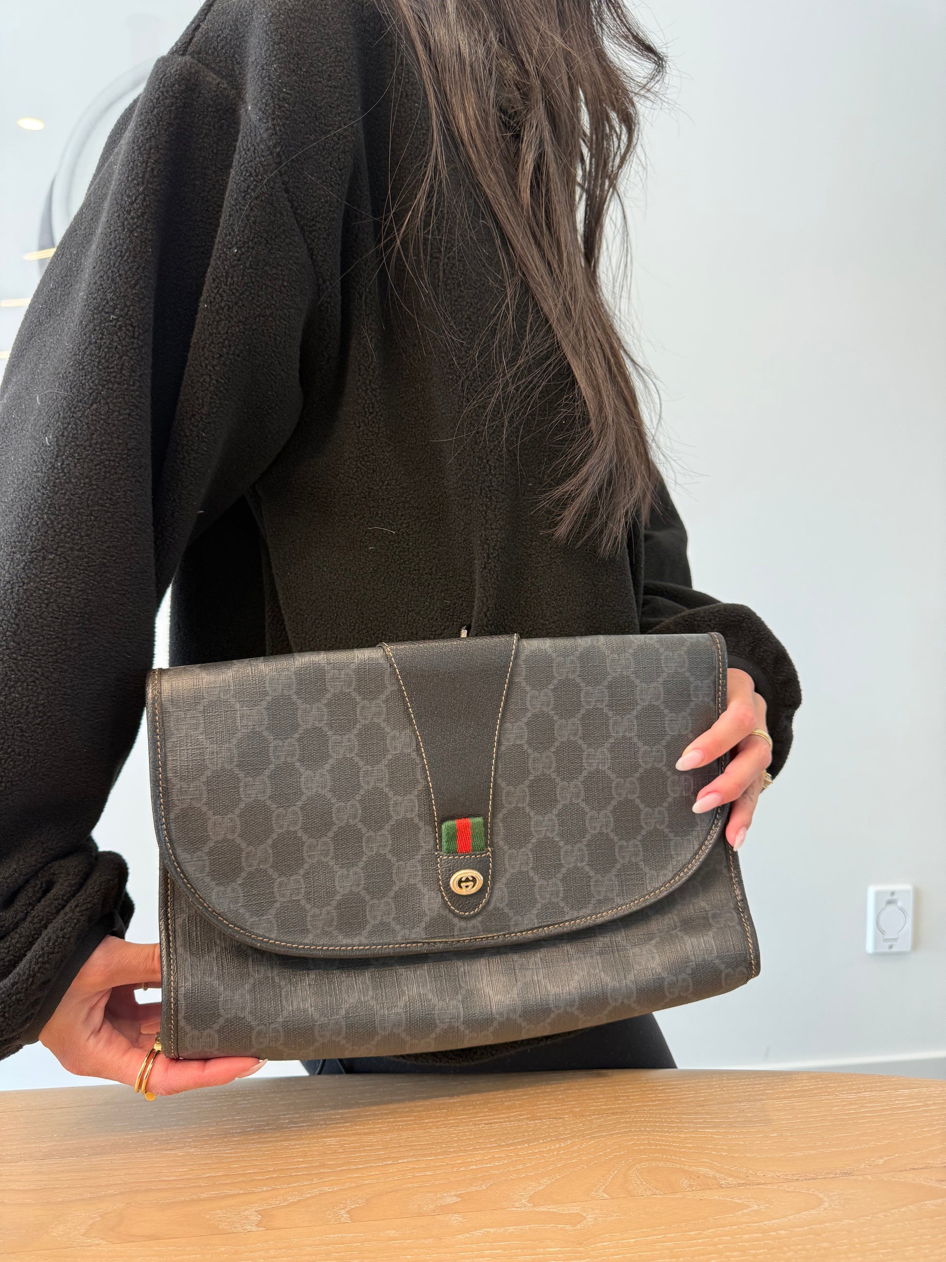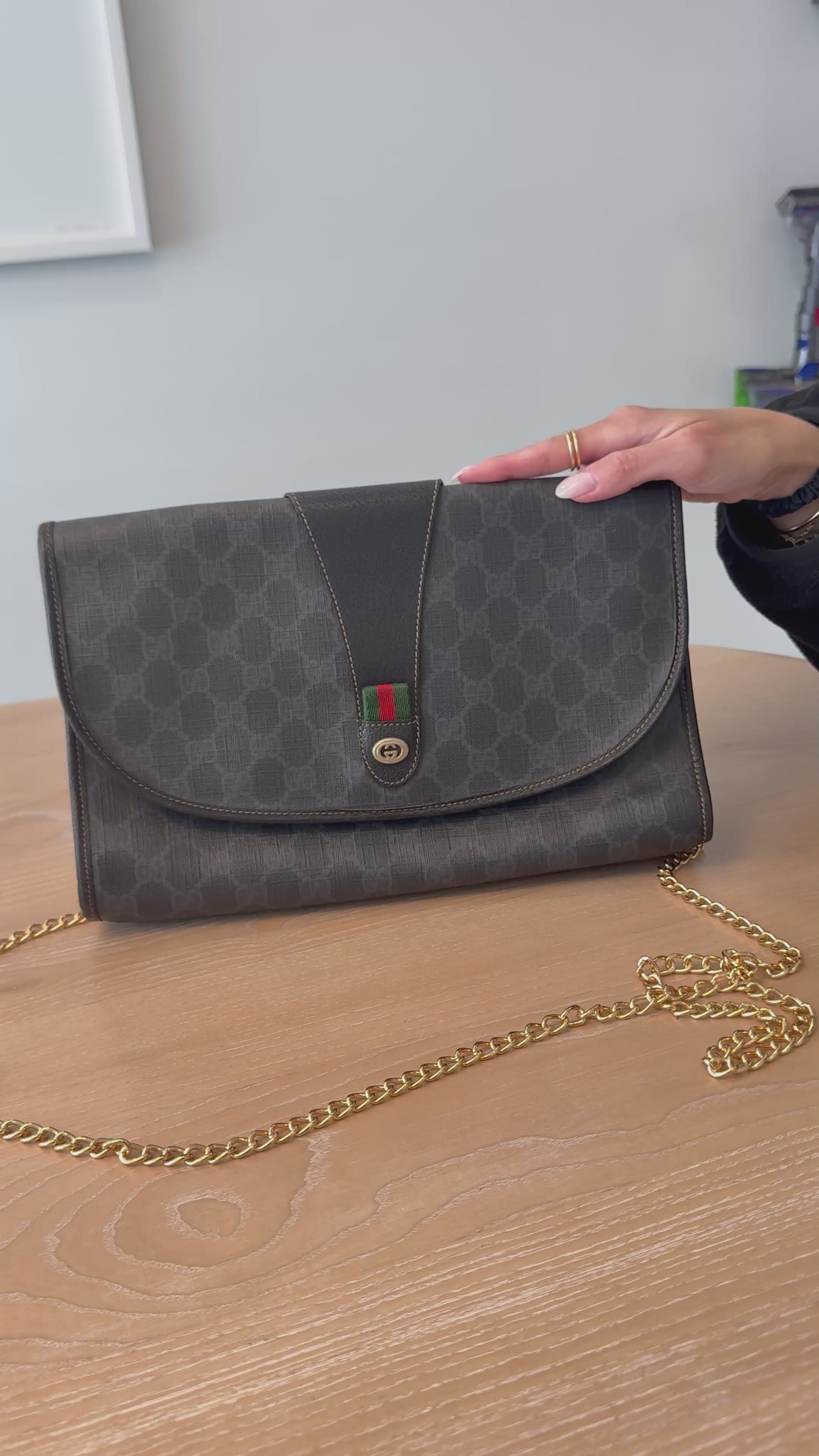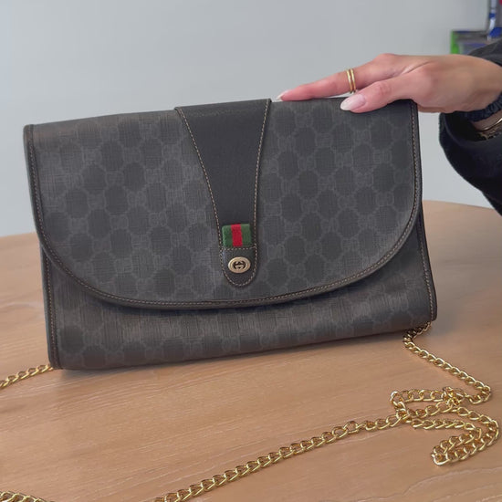 Rare Gucci supreme graphite Ophidia magnetic closure crossbody clutch with fabric interior ! Fits phones wallets keys makeup etc