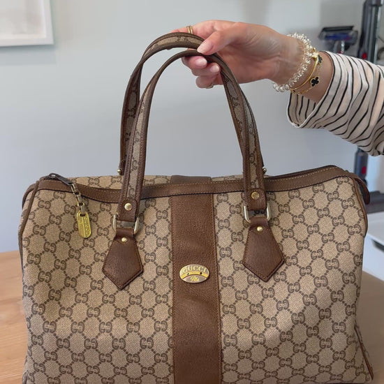Rare Gucci Supreme plus heavy heavy duty top handle speedy carryon with gorgeous fabric interior and authenticity card!!! Rare vintage gold.