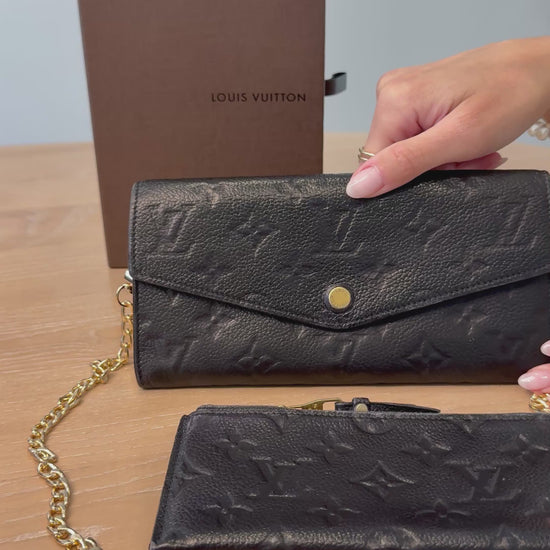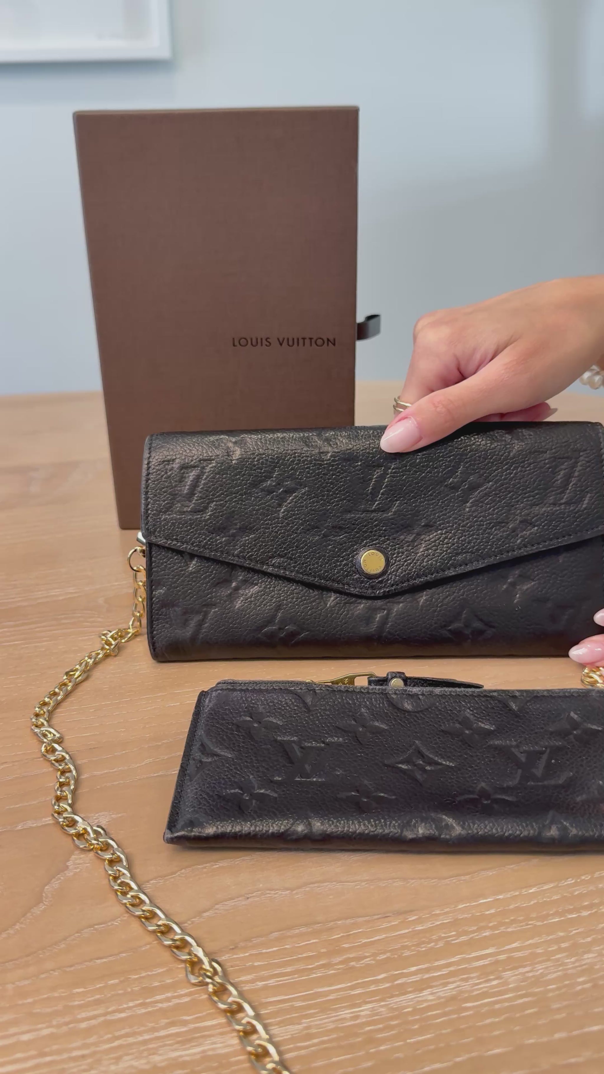 Rare Louis Vuitton Sarah Empriente black /gold wallet with added strap and original box plus original empriente insert ! Retail is over $1000