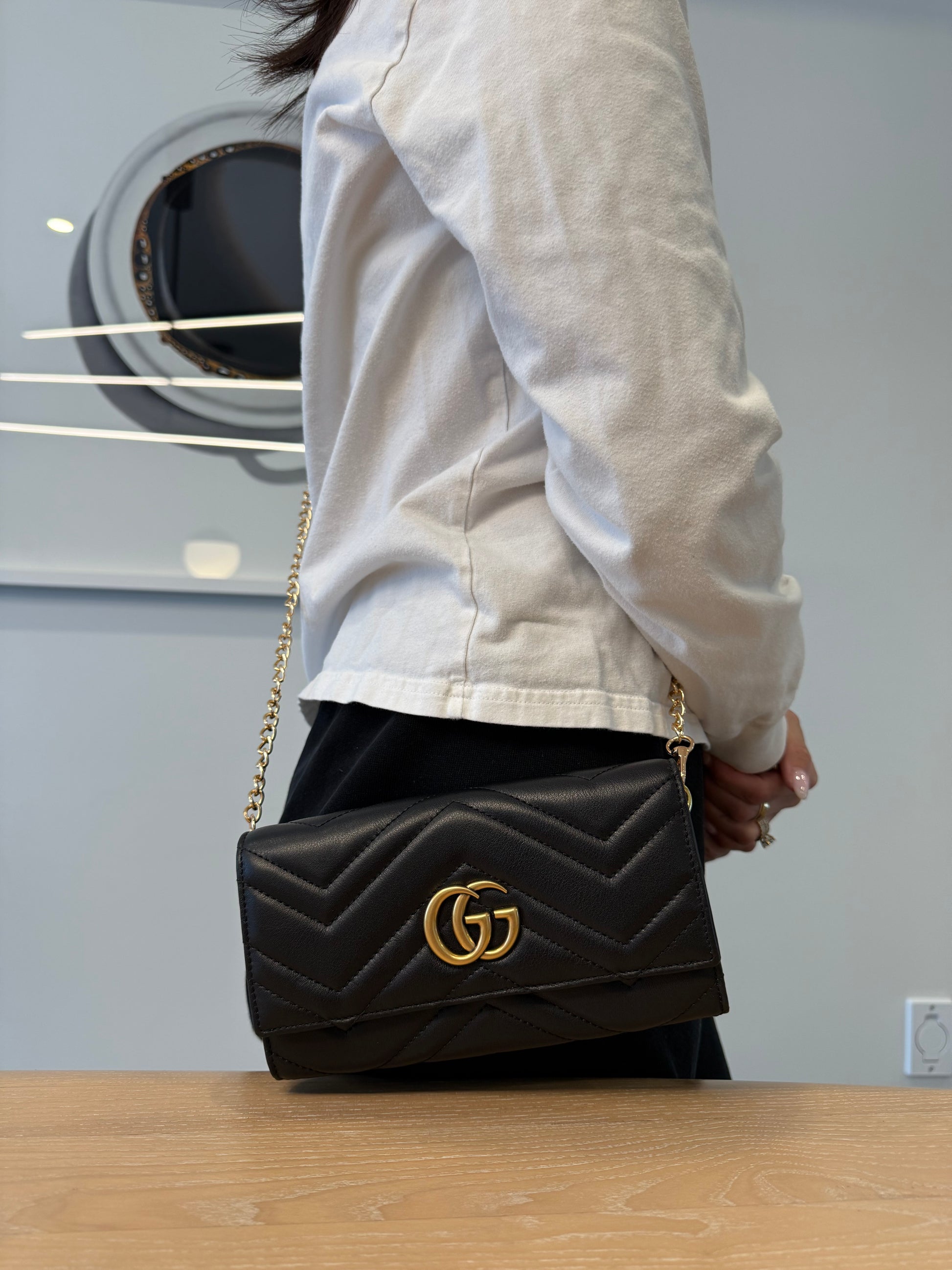 Retail $1150! Like new Gucci Marmont flap xl wallet with added strap in chevron ! Strap is removeable ! Fits phones cards cash coins etc