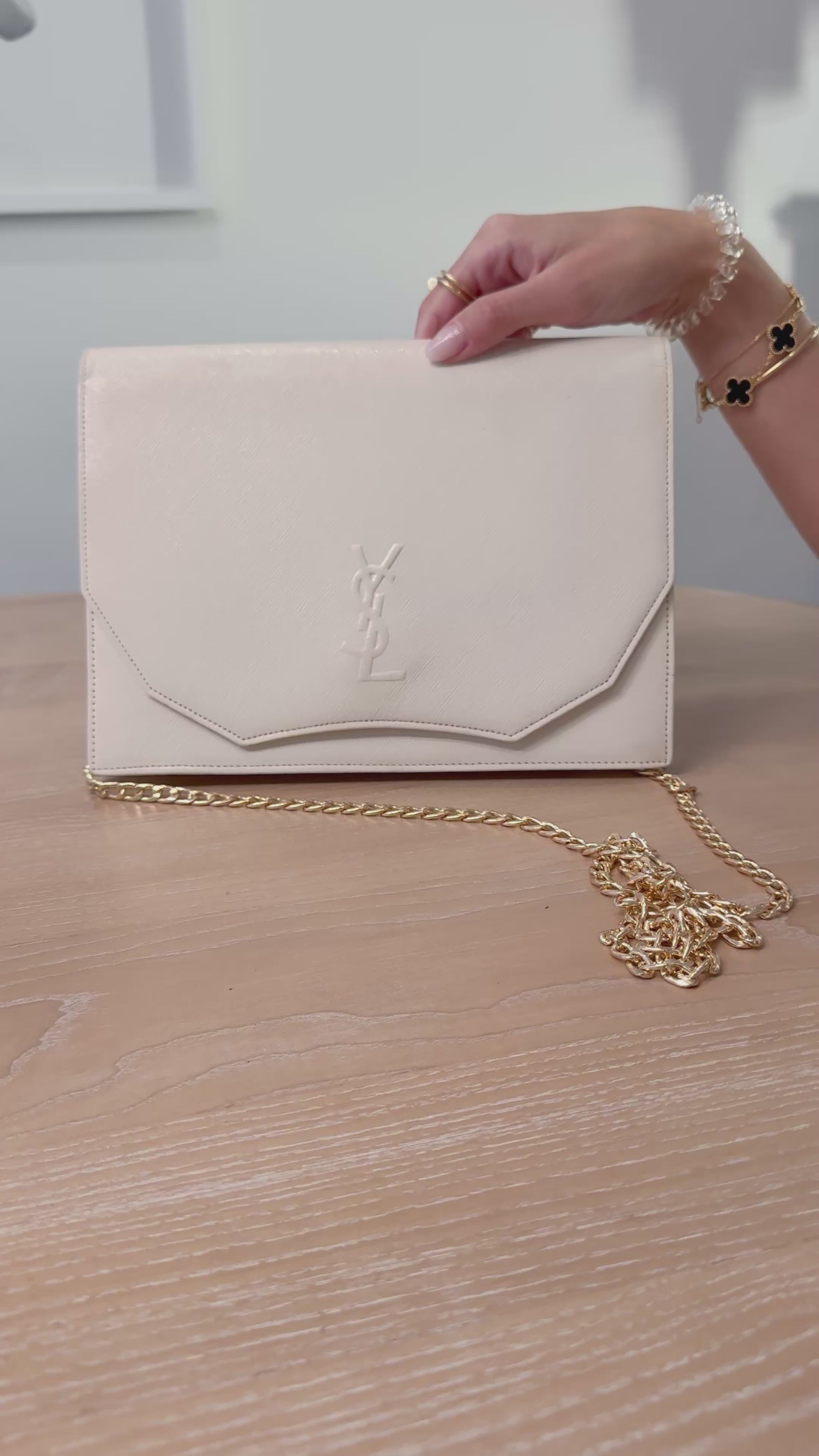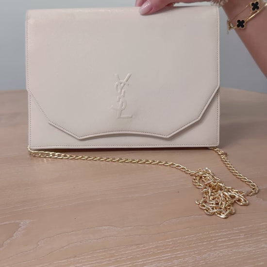 Yves saint Laurent magnetic flap crossbody clutch in white /gold! Fits phones keys wallets makeup etc